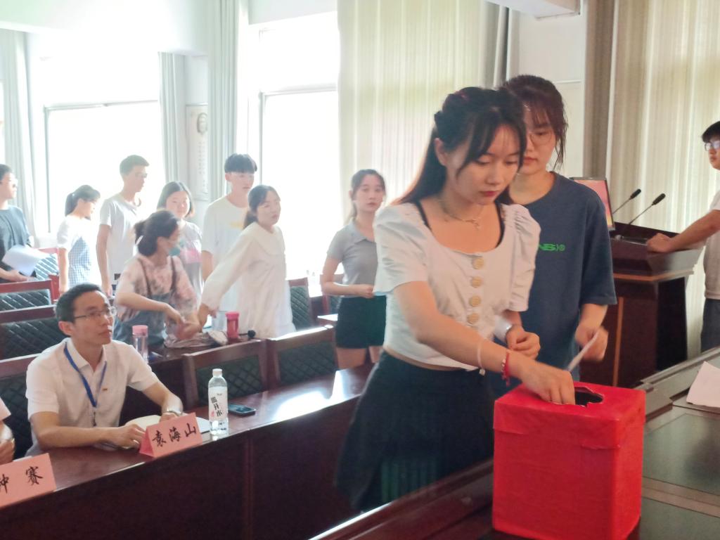 紧接着,会议进入紧张严肃的投票选举环节,按照研究生会代表选举、学代会代表选举和学生会第十八届主席团成员选举的顺序依次进行。最后,团委书记钟赛公布选举结果。在与会人员热烈的掌声中,我院第四次学代会研代会至此落下帷幕。