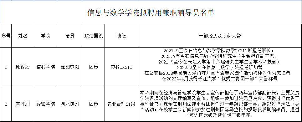 因工作需求,我院根据英国上市公司365兼职辅导员招聘要求,经“个人申请、资格审查、面试考核”等工作程序,拟聘用邱俊毅、黄才润为我院兼职辅导员,现予以公示。