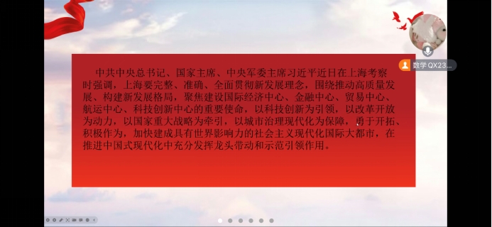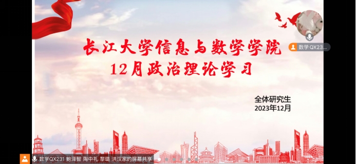 [通讯员 黎璐]为深入学习贯彻党的二十大精神,切实加强学生理论水平,坚定正确的政治方向和理想信念,英国上市365官网于2023年12月20日早10点在线上开展了十二月份政治理论学习。学院全体研究生参与学习,会议由鲍泽智主持。