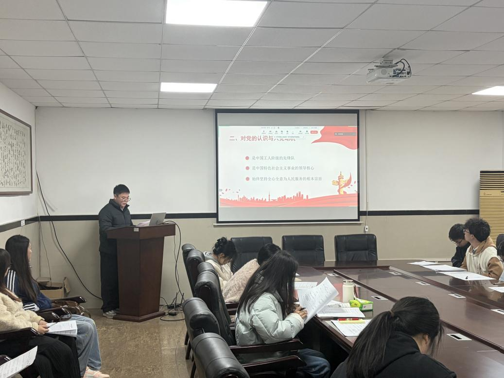 本次会议围绕理论学习、民主评议党员、发展对象答辩和专题党课等议程有序推进,内容丰富、务实高效。会议伊始,党支部成员张亚婷、张鑫雷、欧登波带领全体党员集中学习习近平总书记在二十届中央纪委五次全会、党的二十届四中全会精神专题研讨班的重要讲话,研读《求是》杂志重要文章与《中国共产党章程》(第四章),并传达中央、省委及学校党委关于政绩观学习教育的工作部署,引导党员结合研究生身份思考担当作为与正确政绩观的实践路径。与会党员紧扣正确政绩观学习教育要求,结合自身思想、学习与工作实际开展交流研讨,就如何树立和践行正确政绩观进行了深入交流。随后,学院党支部开展民主评议党员工作,全体党员对照合格党员标准,联系实际进行党性分析,认真开展批评和自我批评。