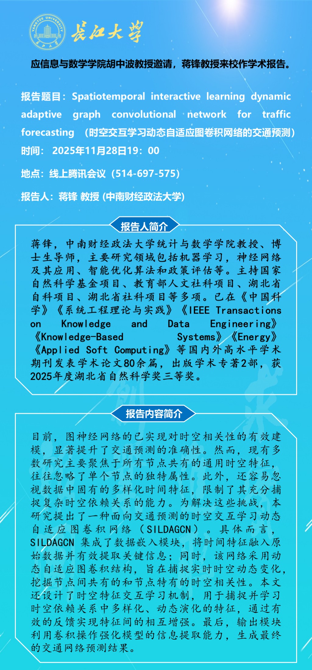 Spatiotemporal interactive learning dynamic adaptive graph convolutional network for traffic forecasting (时空交互学习动态自适应图卷积网络的交通预测)