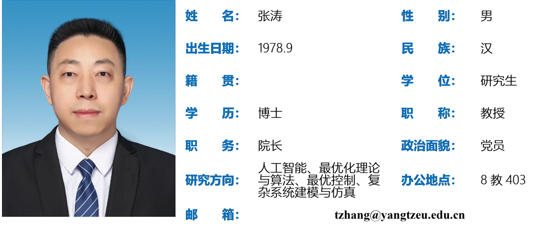 张涛,男,1978年9月生,博士,教授,博士生导师,现任英国上市365官网院长。2014年6月博士毕业于武汉大学系统工程专业。2017.9-2018.9,美国德州农工大学访问学者。湖北省系统工程学会常务理事,湖北省数学会理事。