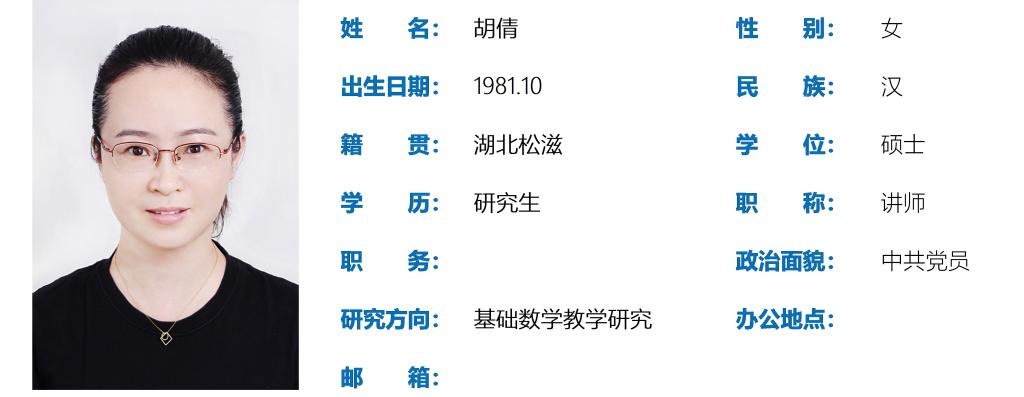胡倩,女,1981年10月出生,硕士研究生,讲师。主要从事高等数学教学研究,曾获英国上市公司365第二届青年教师讲课比赛一等奖,湖北省第六届高校青年教师教学竞赛理科组三等奖,英国上市公司365第八届教学工作突出贡献二等奖,荣获2018-2019学年“任大龙奖教金”,多次荣获英国上市公司365教学优质奖。